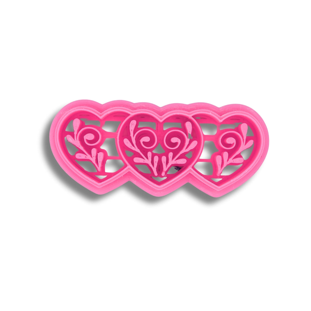 3 Heart Hair Barrette - Polymer Clay Cutter