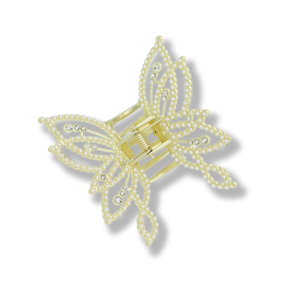 Gold Butterfly Faux Pearl Embellished - Claw Clip