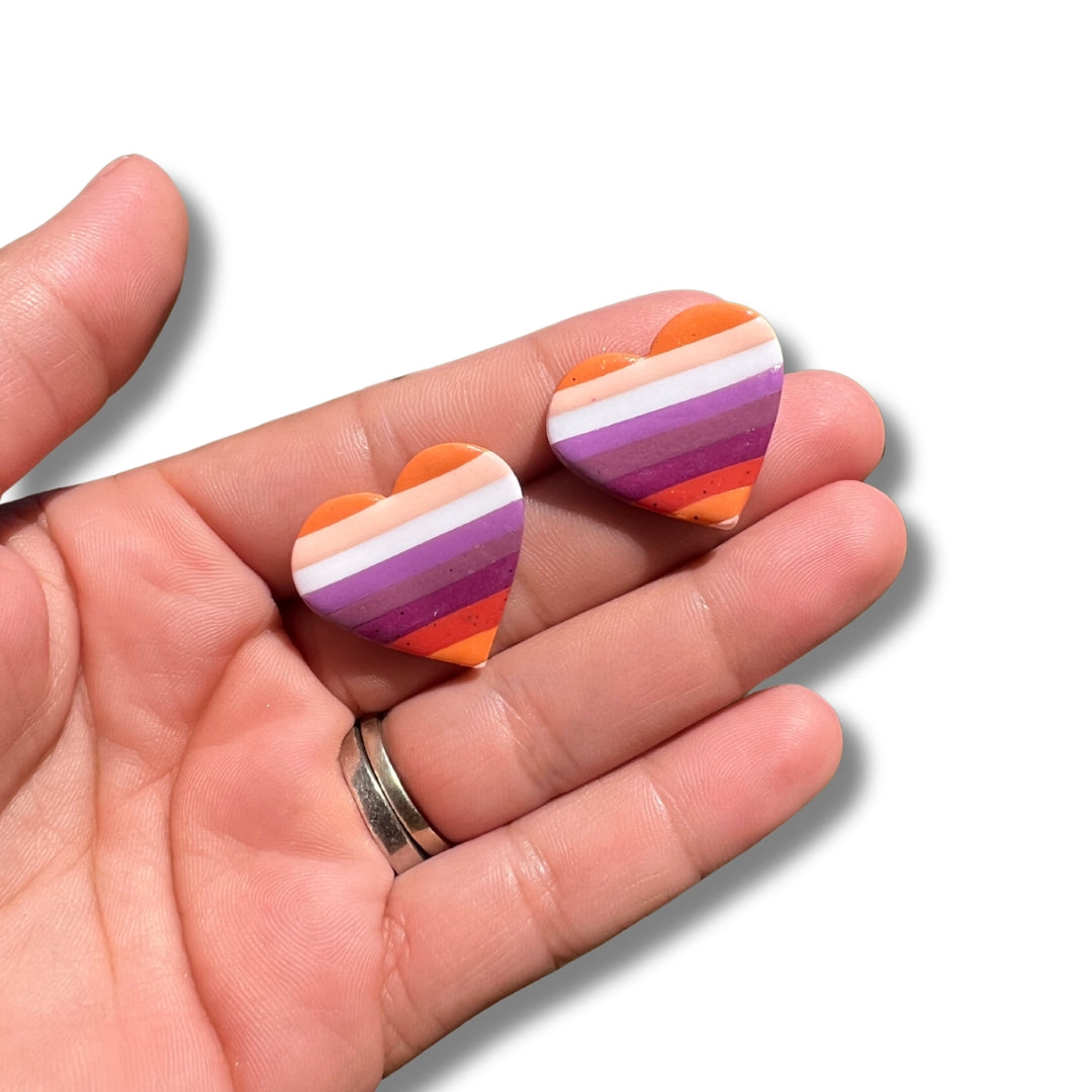 Lesbian Flag Horizontal Stripe Heart Studs- Handmade Polymer Clay Earrings