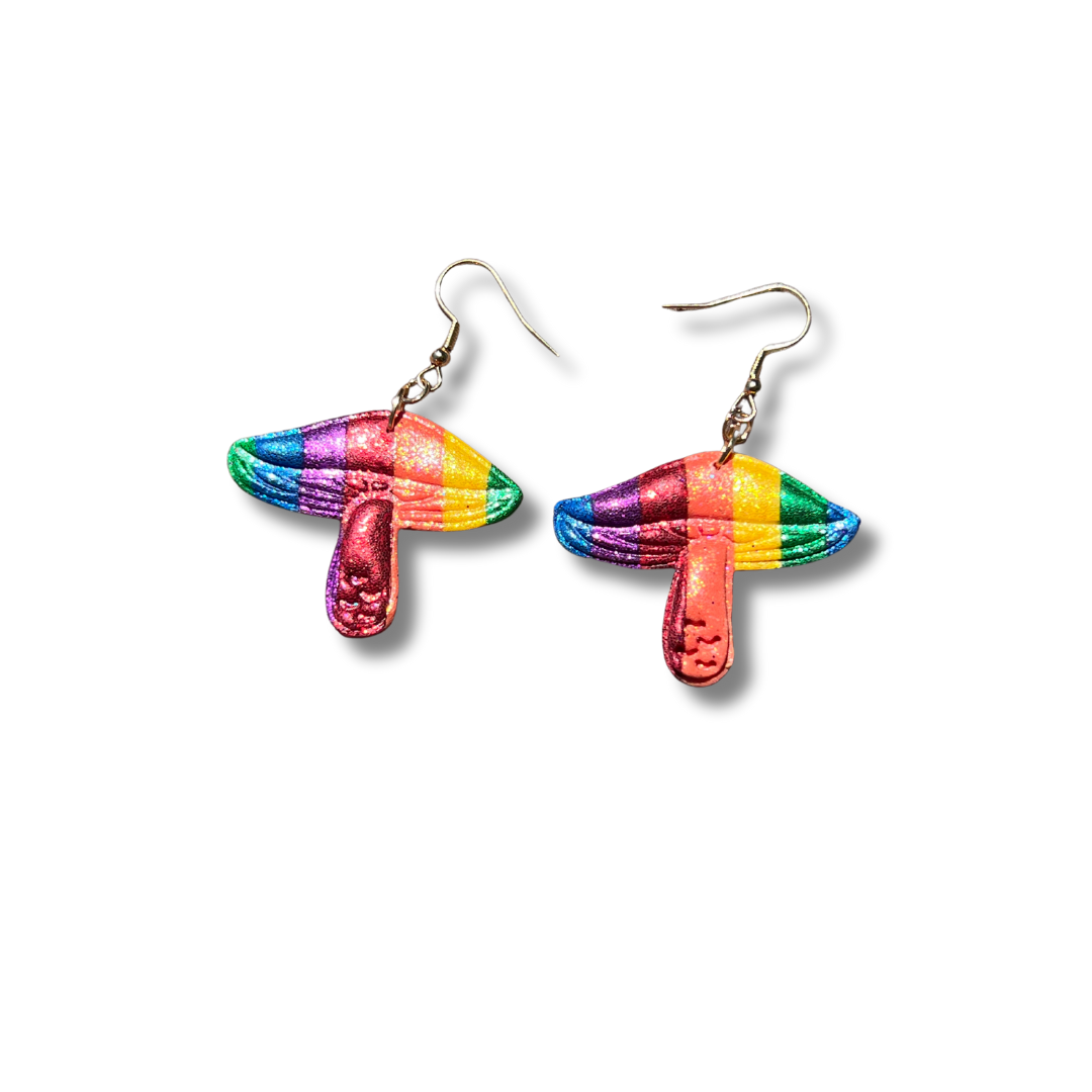 Rainbow Mushrooms - Handmade Polymer Clay Earrings