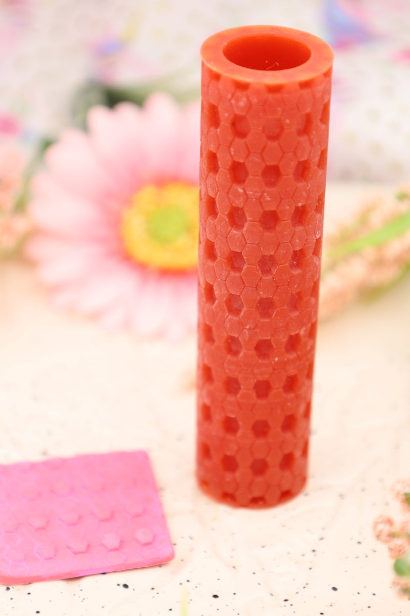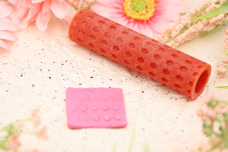 To use, roll out the clay to the required thickness. Place on a ceramic tile or your baking surface. Use a soft brush to cover the roller in cornstarch. Use some extra cornstarch and brush it on the top layer of your clay. Lightly tap off some of the excess cornstarch from the texture roller. With even and gentle pressure, roll your roller over the clay slab to get the desired effect.