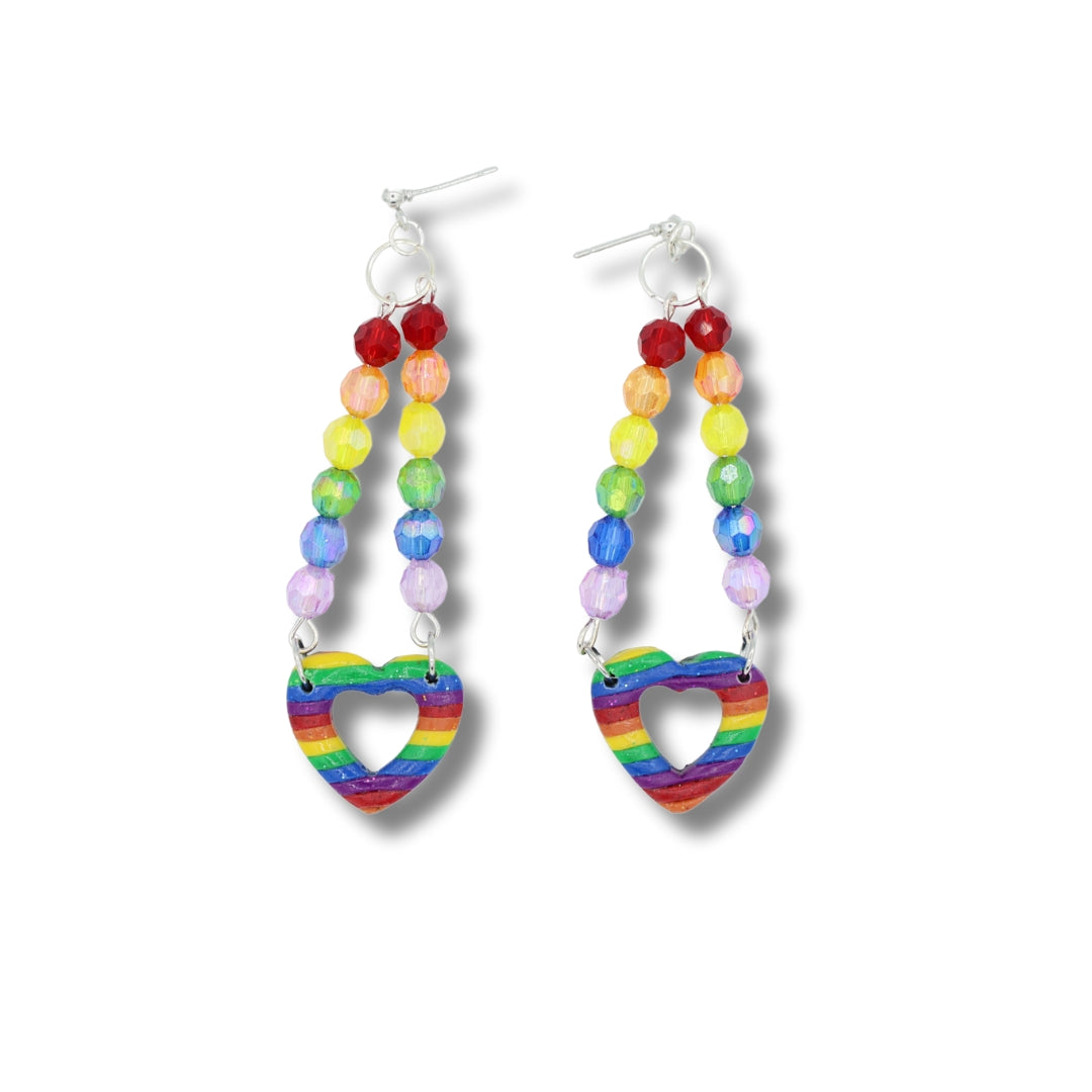 Rainbow heart Beaded Dangles - Handmade Polymer Clay Earrings