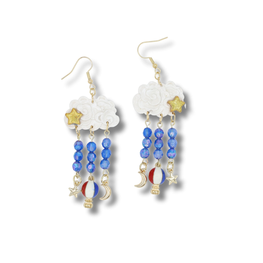Red, White & Blue Beads hot air Balloon with stars- Handmade Polymer Clay Earrings