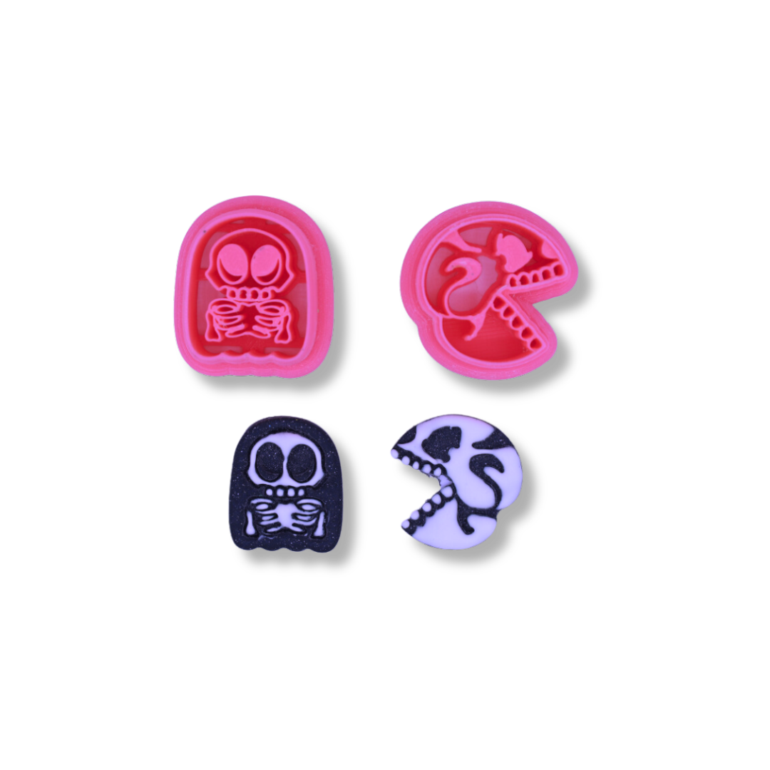 Pac Man Skull & Ghost Set Skull - Polymer Clay Cutter
